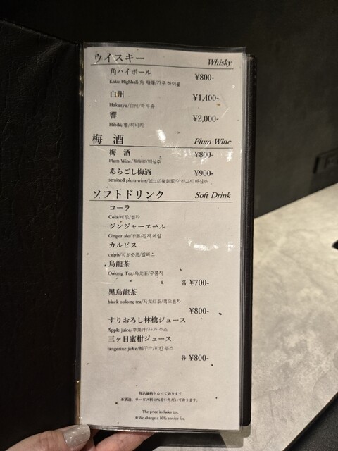 メニュー メニューは税込表示だけど、サービス料別10%途掛かります