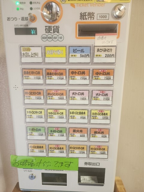 普通は食券を購入して並ぶのですが、今回のお目当ては“現金にて承ります“と書かれた「大トロとネギトロ丼(大盛)」デス(=^ェ^=)
