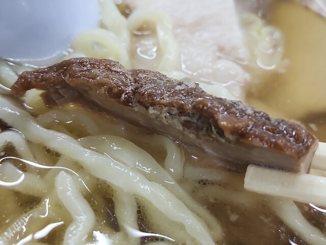 喜多方ラーメン特有の平打ちで縮れた多加水麺が、スープによく絡みますね(^^)