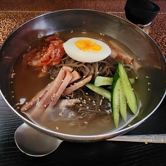 こちらの冷麺は、細麺で色が黒い韓国冷麺タイプ…キンキンに冷えていて、火照ったを冷ましてくれます("⌒∇⌒")