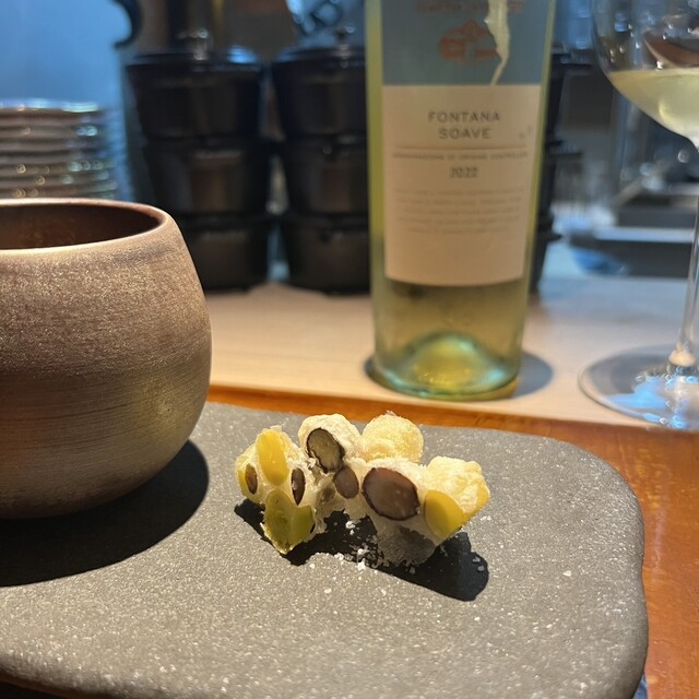 お料理に合わせてペアリングしてくれるんですが、ペアリングをお願いすると運がよければ、シェフ考案の白トリュフ赤ワインを出していただけるそうです‼︎