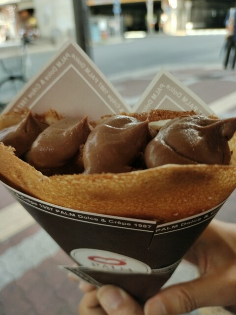 塩キャラメルチーズクリームは、チーズクリームの味がしっかりしていて、塩味が丁度よくナッツがいいアクセントになって美味しかったです。チョコカスタードと生クリームは、チョコカスタードの味が美味しくペロリと完食しました。どちらも、クレープの皮がとても美味しくて好みのお味でした。