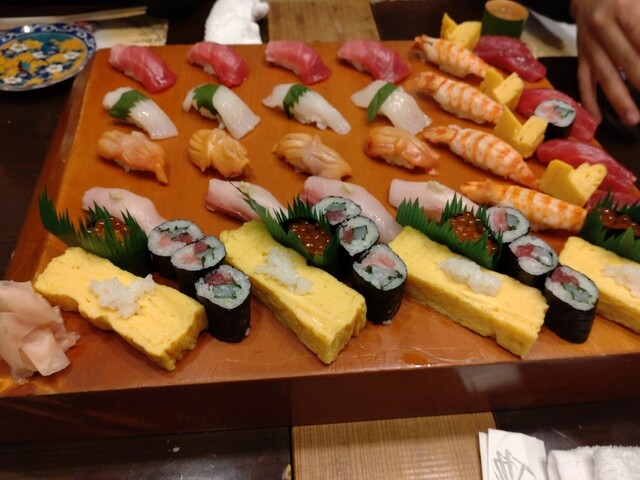 メニュー構成はほぼ同一で、馬刺し、牡蠣(生又は焼き)がコースの一品として、握りでは厚岸産馬糞ウニが加わっていました。