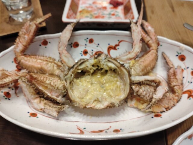 さて肝心のお料理は、お通し(海ブドウ他)→糠漬け→毛ガニ→的鯛の焼物→握り寿司(盛合せ)→握り寿司(炙り物✕3)→味噌汁(アオサ)→ジェラート(栗or胡麻)