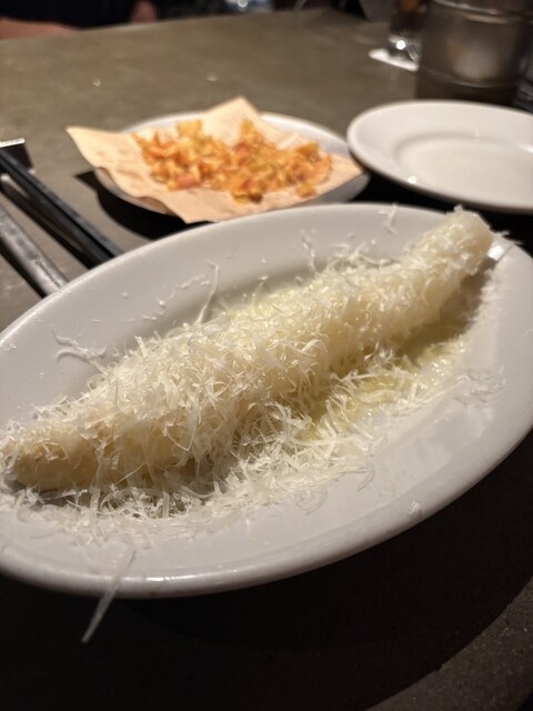 味:非常に良い、特にミートスパゲティは至高の領域、鶏出汁も使用してソースに和牛100%のハンバーグを炭で火入れ、それを崩してパルミジャーノレッジャーノを豪快に削りかける。1.2cmのパスタはもちもちでソースを全て絡めて口まで運んでくれる