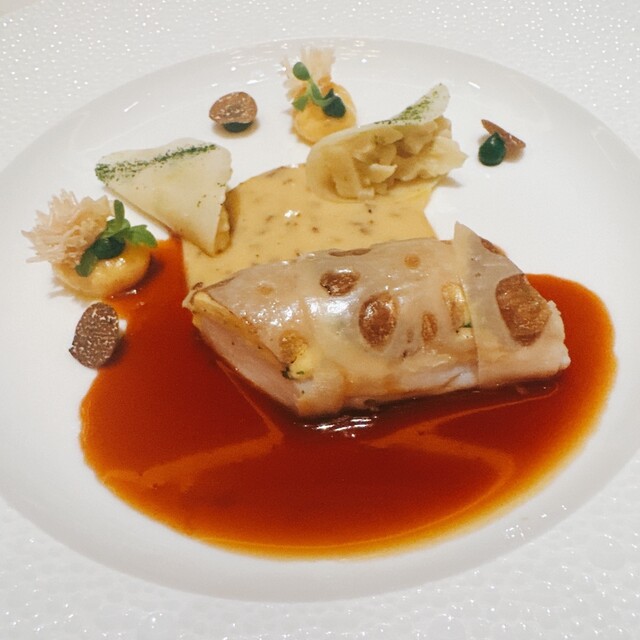 スタートから華やかで可愛らしいお皿です。冬の始まりを感じさせる食材たちと、要所要所で力を発揮するキャビアやトリュフのようなアクセントたちの食材使いが見事でした。