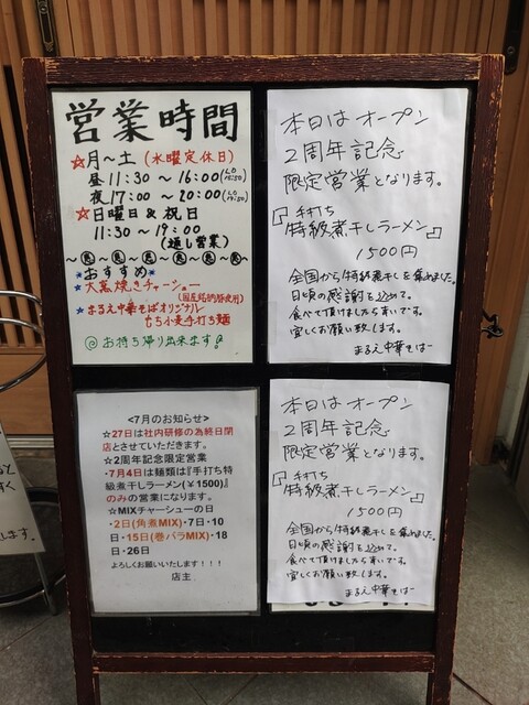 巣鴨駅のまるえ中華そば、2周年記念の限定麺を食べに来ました。今回は豚と高級煮干しのラーメン、最高に美味しく記念すべき一杯でしたね!