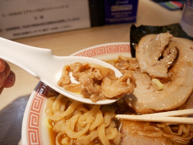 チャーシューは柔らかく煮込んだ煮豚で、口の中で溶けていきます。旨味と甘味がたまりません。