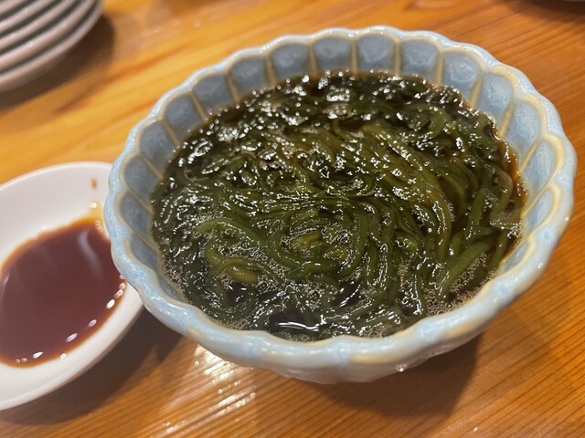 小鉢の太もずくもなかなか出せないけど良いのが入ったからと説明が添えられましたが、とろとろプリプリとした食感が楽しく良き箸休め。