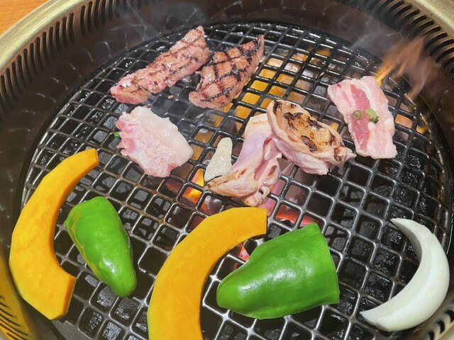 コリっとした鶏や濃厚な豚カルビーも新鮮な海老やホタテも炭火で炙り、美味い香ばしさをまとい食材の美味しさを堪能しました。