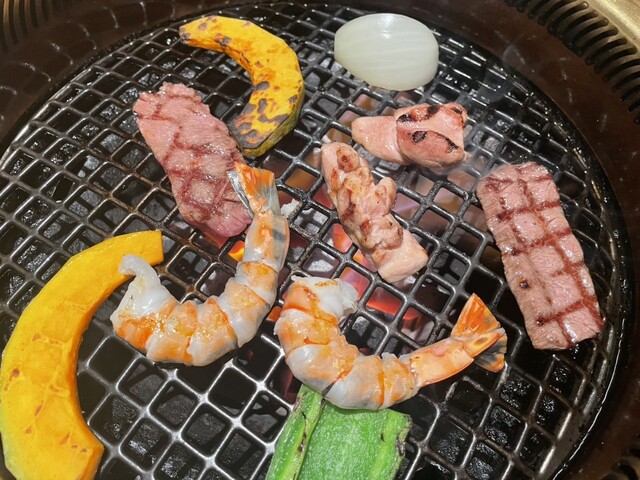 サイドを支える鶏肉や豚カルビも臭みなく新鮮さが伺えます。エビとホタテも丁寧にした処理されていて、焼きすぎないように程よく炙って塩とレモンで頂くと、これもまた旨味が詰まっていて美味しい