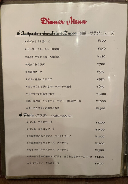当初、ホワイトソースものを食べようと思っていましたが、前菜にサラダ、ピッツァもパスタも、肉料理、ドリンク、デザートまでセットされたおまかせシェアディナー(2,900円)があまりに魅力的でこちらをオーダーしました。