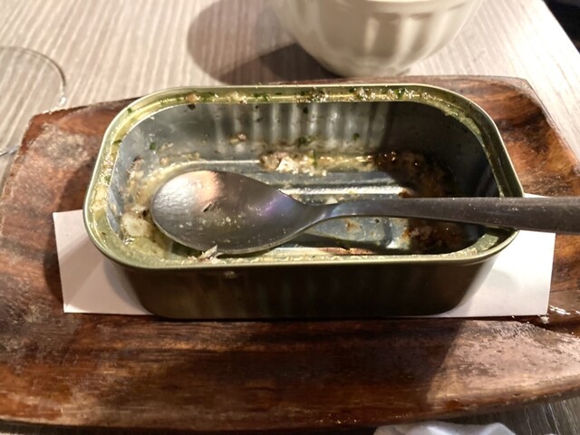アヒージョも美味くて、いつも オイルサーディン缶詰にバゲットをつけて食べます、濃いめの味に舌鼓、最高です♪
