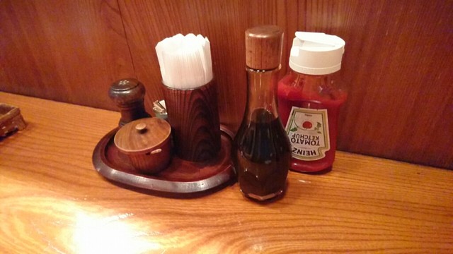 テーブルにあるウスターソースと、からしを付けていただきます。