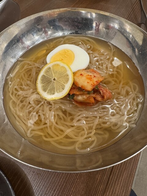 締めには、特製冷麺を注文。コシのある麺とさっぱりとしたスープが、焼肉の後の口直しに最適です。トッピングのキムチやゆで卵もバランス良く、最後まで美味しくいただきました。