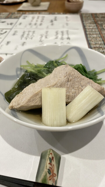 いよいよ、ねぎま鍋です。お店の方が作ってくれてとりわけてくれました。他のお店で食べた時はやはりこれは魚だと感じたのですが、このお店のマグロは全く臭く無くビックリしました。肉厚ですがお箸で崩せます。スープも飲みましたが脂も、臭みもなく。これは美味しいです。ワカメも臭みなくネギも美味しいし、完璧です。この後、炊き立てご飯にスープをかけて食べましたが、ご飯も美味しいし、言うこと無しです。