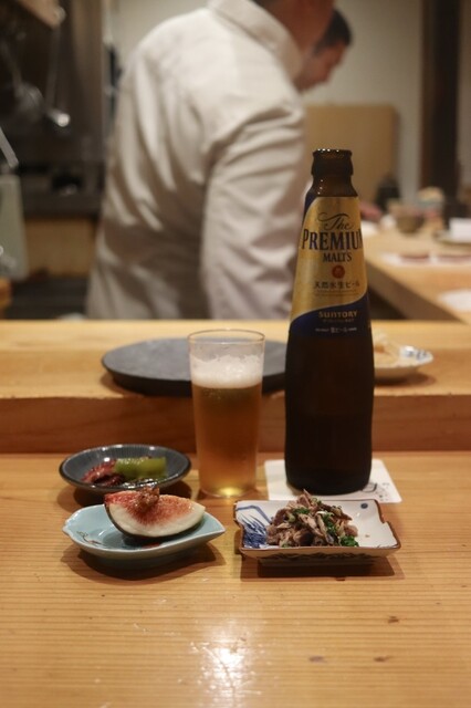 初めのお料理は小鉢にさんまの肝醤油焼き、にだこ、無花果!