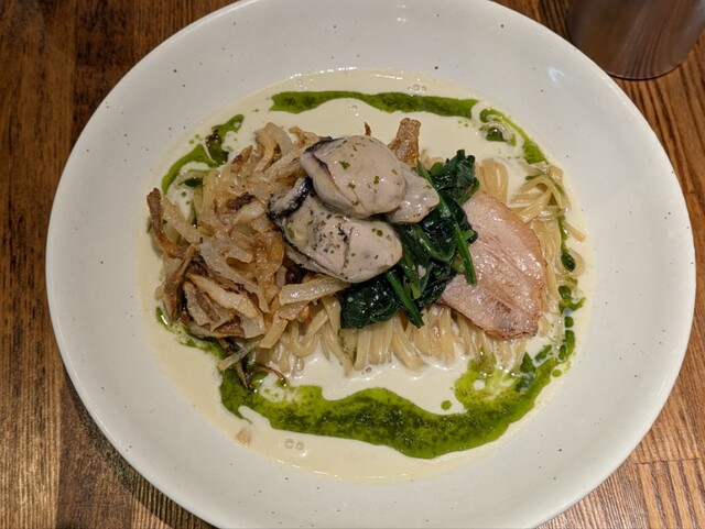 ゴワムチな平打麺にクリーミィな飲めるスープ。