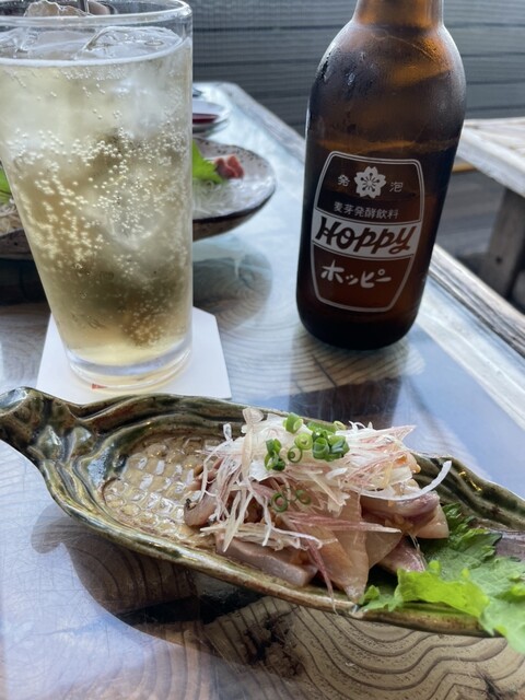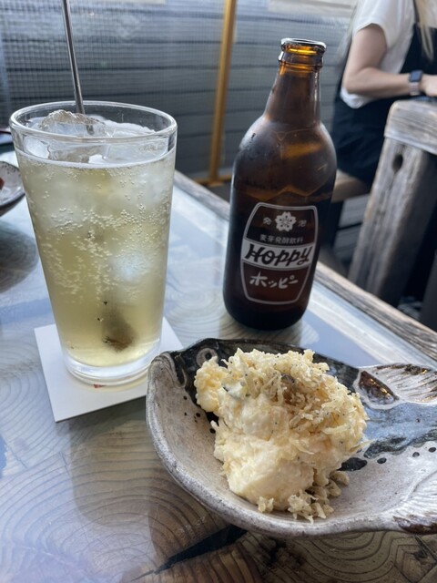 まかない丼、ポテチ、唐揚げ、ホッピー