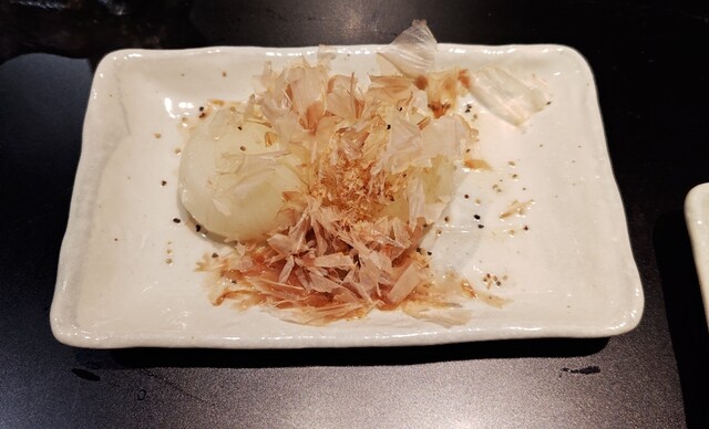 温かい小さい玉ねぎ。白だしと鰹節で優しい。