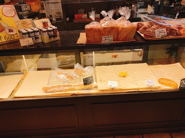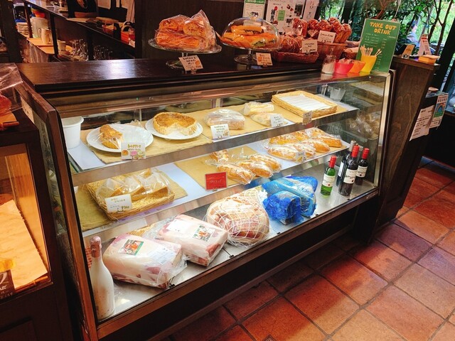 店内入ってすぐにショーケースがあり、中にはテイクアウト用のパンやケーキなどが並んでいます。