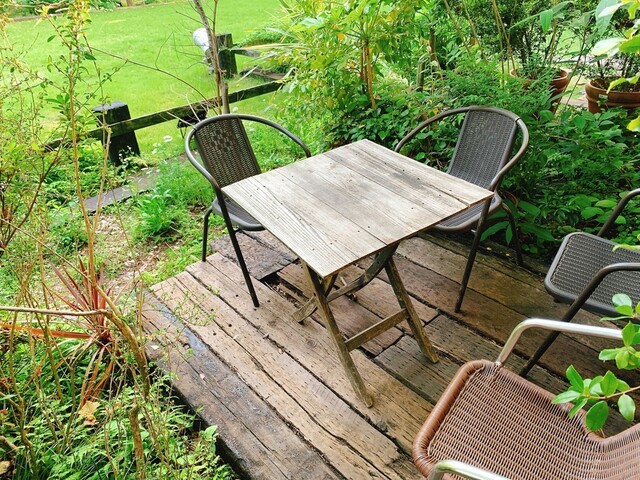 そして奥にはテラス席があり、店内よりも多くのテーブルと椅子が用意されています。