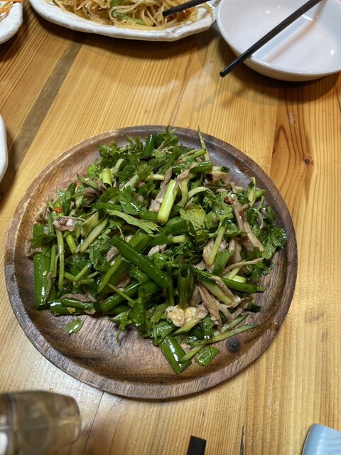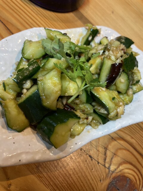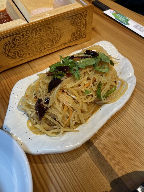 サイドメニューでは、前菜として出されたサラダ類が印象的。見た目はシンプルですが、中にはかなり辛いものもあり、辛さ耐性のない方にはやや厳しいかも…。ただ、辛い物好きにはやみつきになる味だと思います。モンゴルや中央アジア系のスパイスを感じることができ、他店では味わえない独特の風味でした。