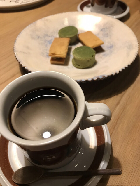 深煎りコーヒーと小菓子。