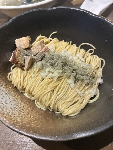令和8年2月14日 の 朝ラーメンは 今週も4日連続で煮干そば剛さんに訪問しました。 口頭で 煮干そば かけ 1200円 和え玉 300円 を注文しました。 安定の煮干スープ美味し(゚д゚)ウマー ご馳走様でしたε- (´ー` ) フー