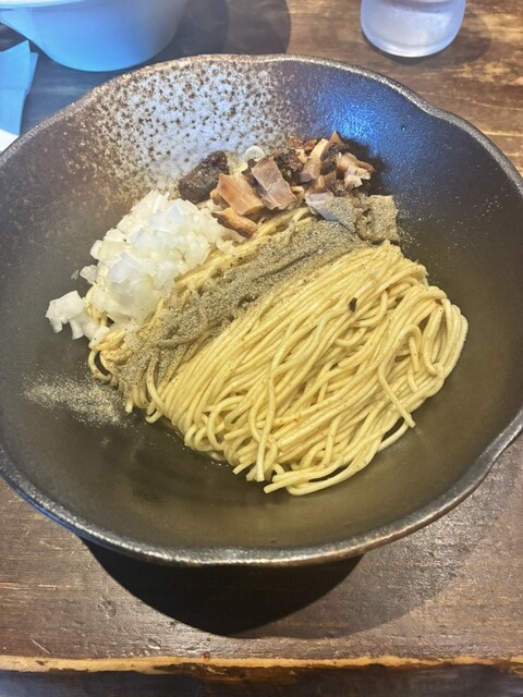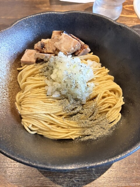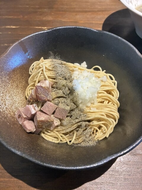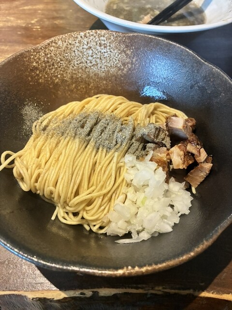 令和7年9月25日 の 朝ラーメンは 昨日に続き 煮干そば剛さんに訪問しました。 口頭で 煮干そば 1200円 和え玉 300円 を注文しました。 パツパツ麺と煮干スープ美味し!(´▽`) ご馳走様でしたε- (´ー` ) フー