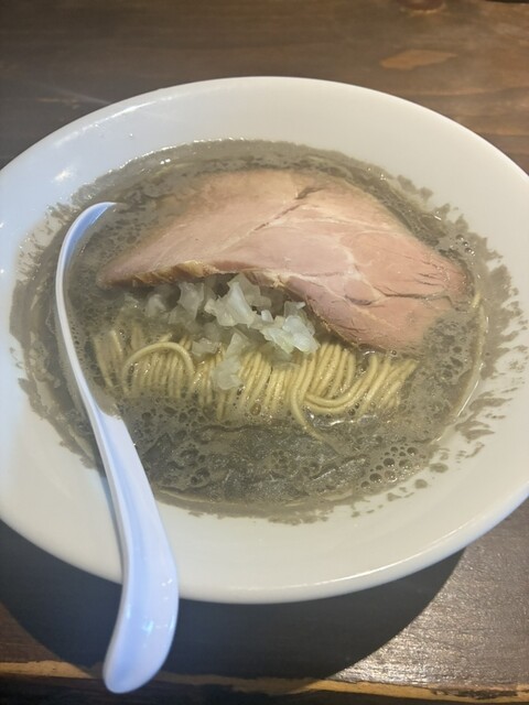 令和7年7月23日 の 朝ラーメンは 瀬名川にある 煮干そば剛さんに訪問しました。 口頭で 煮干そば 1200円 和え玉 300円 を注文しました。 朝の煮干スープは身体に染み渡ります。( ゚Д゚)ウマー ご馳走様でしたε- (´ー` ) フー