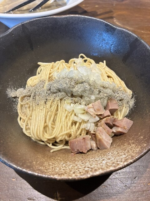 令和7年6月4日 の 朝ラーメンは 瀬名川にある 煮干そば剛さんに訪問しました。 煮干そば 1200円 和え玉 300円 を注文! 4日ぶりの煮干スープ♬ パツパツの麺 最高です( ゚Д゚)ウマー ご馳走様でしたε- (´ー` ) フー