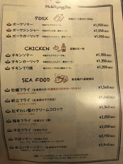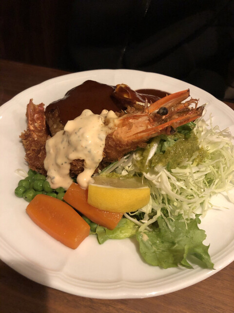 ポークソテーと海老フライのセットとポテトサラダは期間限定メニューでしたが、注文して正解でした。
