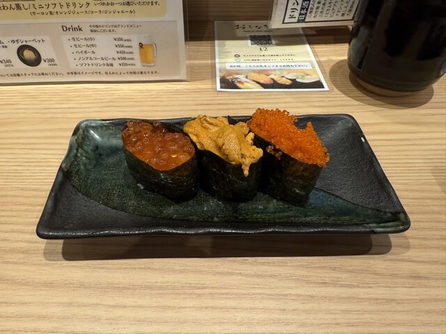 炙りの握りが数種類あったのが良かったのと、魚卵好きにはたまらない痛風三昧の軍艦や、今回は食べていないですが丼ものも美味しそうで、値段もリーズナブル、また来たいと思います。
