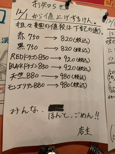 以前からリニューアルされて、さらに美味しくなったレッド。麺とスープの絡みも最高、辛さもちょうどいい。店内に置いてあるサーキュレーターに貼ってる店主の書き込みもまた面白くて最高!
