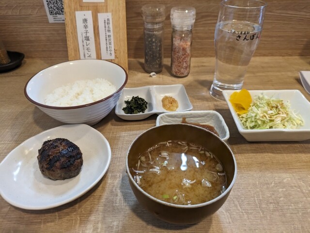 メニューは一つしかないので参乃ハンバーグ定食を注文です。ハンバーグは三つ付いています。