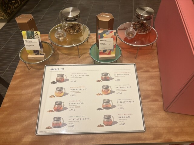 reservedのスタバの地下にあるスタバのティー専門店。珈琲類であれば価格が1,000円近くかかりますが、ティーはポットで提供されるのに500円台。