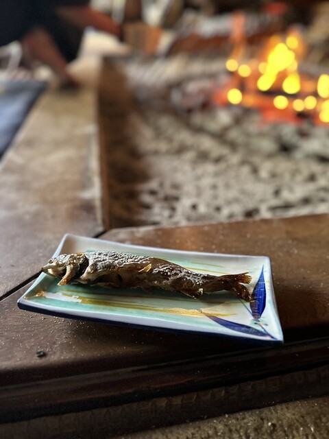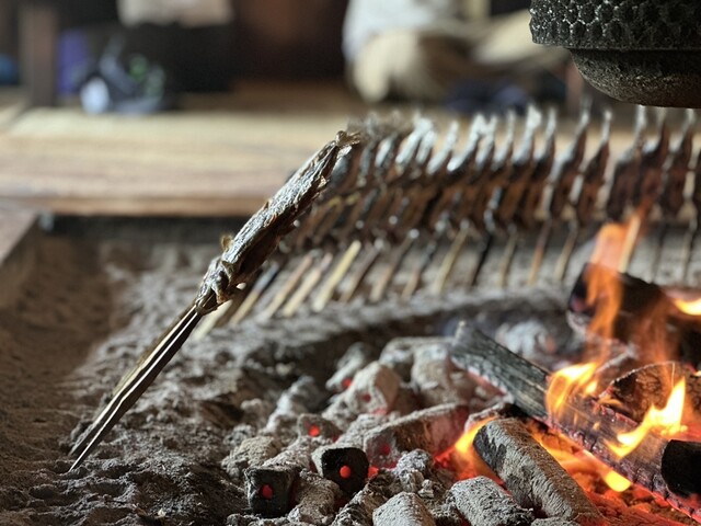 じっくり囲炉裏の遠赤外線で焼かれた岩魚は骨も全部食べれるくらい。