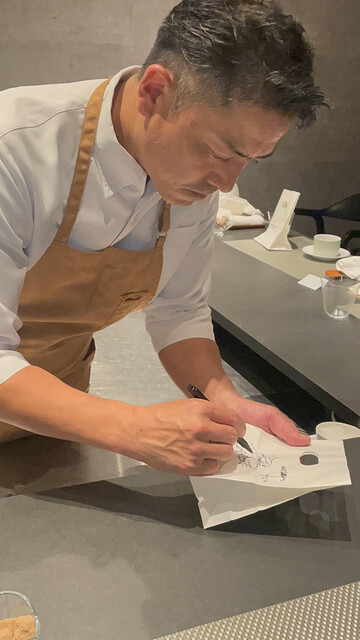 食材に真摯に向き合っている姿が素敵すぎる。。。スペシャリテのパテアンクルートやダブルメインのお魚やお肉をカットしている時に集中してちょっと舌を出している姿や出来上がったお料理を提供する際のおちゃめな姿のギャップもまた素敵。