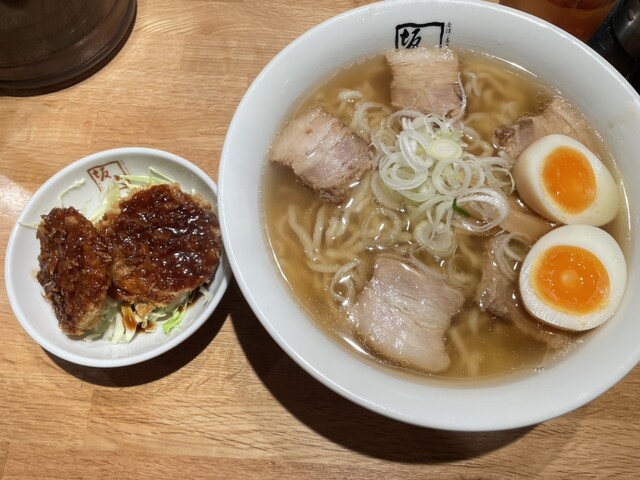 今回はいつものラーメンに味玉トッピングと別皿のソースカツを注文。