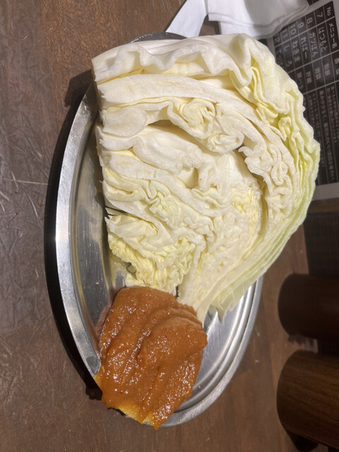 おつまみはキャベツ一択。味噌だれが反則級に旨い。