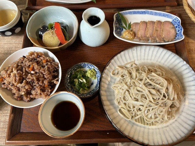 炊き込みご飯、小鉢、鴨、しっかり盛られたお蕎麦で1,600円て、、