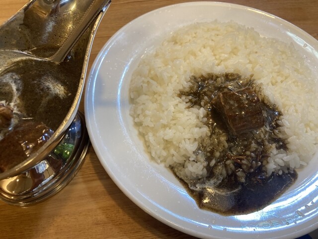 少し苦味のあるルーに柔らかく煮込まれた牛肉片