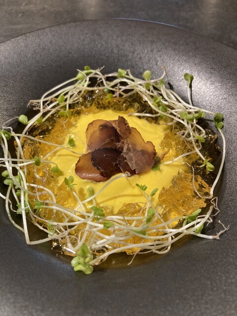 にんじんは にんじんのペーストに焼きとうもろこし 孔雀のコンソメジュレ
