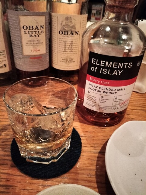 ピート感あるウイスキーをリクエストして、ELEMENTS of ISLAYのSherryCaskをいただきました♪