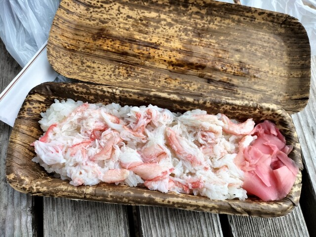 そこで、傘松公園で食べれば良いかと、口コミで評判良かったこちらでかに寿司弁当を持ち帰り。