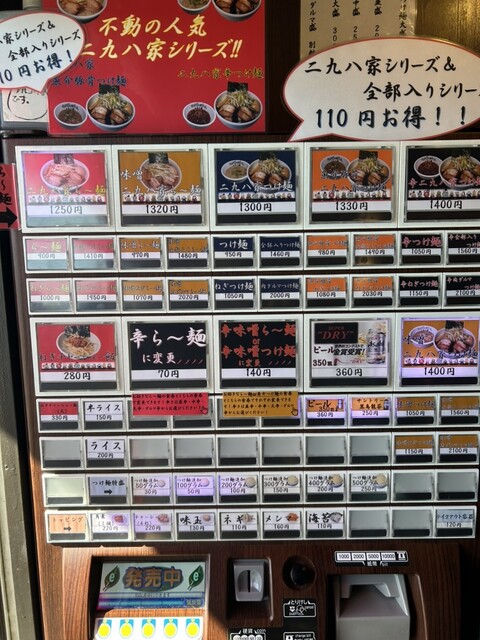 二九八家ラーメン(醤油)+大盛 で1250をポチ。