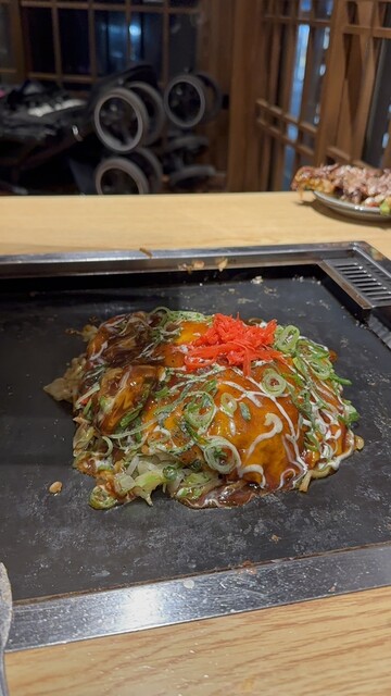 広島焼きは見るからにボリューム満点◎甘めのソースと相性が良くて、一口で幸せが広がります