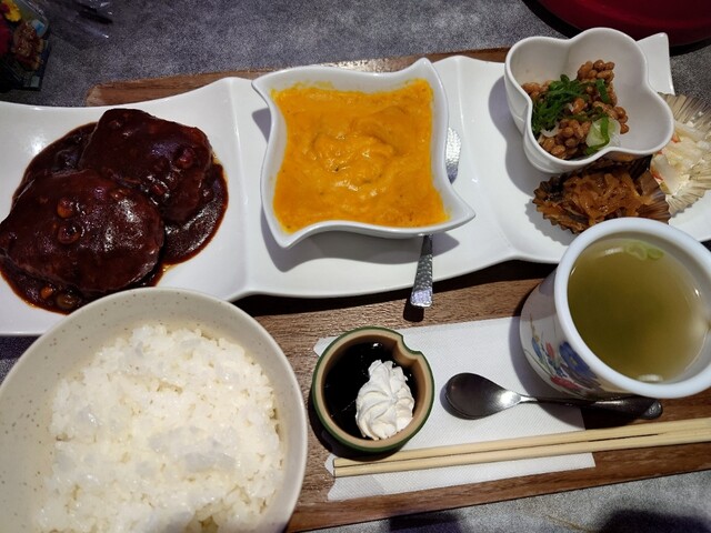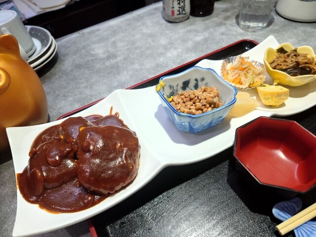 肉々しい家庭的なハンバーグでデミソースも濃く 美味しいです✨