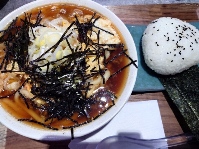 とじうどん 750円、おにぎり(ツナマヨ) 250円
